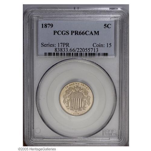 <B>1879<5C> PR66 Cameo PCGS.</B></I> The central devices are nicely frosted and fields show pleasing reflectivity for the issue. A seldom rivaled or surpassed example. Population: 10 in 66, 3 finer (10/05).