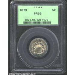 <TABLE cellSpacing=0 cellPadding=0 width="100%" bgColor=#000000 border=0><TBODY><TR><TD width="100%"><TABLE cellSpacing=1 cellPadding=3 width="100%" border=0><TBODY><TR><TD width="100%" bgColor=#79735c><FONT face=arial color=#ffffff size=3><B>Description</B> </FONT></TD></TR><TR><TD width="100%" bgColor=#ffffff><FONT face=arial size=2><B>1879 5C PR66 PCGS.</B></I> A gorgeously preserved premium Gem with wispy rose and lemon-gold patina. The mild cameo contrast between devices and field is not mentioned on the older green label insert. </FONT></TD></TR></TBODY></TABLE></TD></TR></TBODY></TABLE><BR><A name=PricesRealized></A><TABLE cellSpacing=0 cellPadding=0 width="100%" bgColor=#000000 border=0><TBODY><TR><TD width="100%"><TABLE cellSpacing=1 cellPadding=3 width="100%" border=0><TBODY><TR><TD width="100%" bgColor=#79735c><A name=PR><FONT face=arial color=#ffffff size=3><B>Previous Prices from Heritage Auctions</B> </FONT></A></TD></TR><TR><TD bgColor=#f6f6ed><TABLE cellSpacing=0 cellPadding=0 width="100%" border=1><TBODY><TR><TD align=middle width="33%"><B>Date</B></TD><TD align=middle width="33%"><B>Service</B></TD><TD align=middle width="33%"><B>Price</B></TD></TR><TR bgColor=whitesmoke><TD width="33%"><B>08/08/2001</B></TD><TD width="33%">PCGS</TD><TD width="33%">$1,265.00</TD></TR><TR bgColor=whitesmoke><TD width="33%"><B>01/05/2001</B></TD><TD width="33%">PCGS</TD><TD width="33%">$776.25</TD></TR><TR bgColor=whitesmoke><TD width="33%"><B>05/05/2000</B></TD><TD width="33%">PCGS</TD><TD width="33%">$776.25</TD></TR><TR bgColor=whitesmoke><TD width="33%"><B>12/09/1994</B></TD><TD width="33%">PCGS</TD><TD width="33%">$786.50</TD></TR><TR bgColor=whitesmoke><TD width="33%"><B>01/04/1995</B></TD><TD width="33%">PCGS</TD><TD width="33%">$715.00</TD></TR><TR bgColor=whitesmoke><TD width="33%"><B>09/01/1999</B></TD><TD width="33%">PCGS</TD><TD width="33%">$748.00</TD></TR><TR bgColor=whitesmoke><TD width="33%"><B>06/18/2002</B></TD><TD width="33%">NGC</TD><TD width="33%">$891.25</TD></TR><TR bgColor=whitesmoke><TD width="33%"><B>03/26/2002</B></TD><TD width="33%">NGC</TD><TD width="33%">$632.50</TD></TR><TR bgColor=whitesmoke><TD width="33%"><B>08/02/1997</B></TD><TD width="33%">NGC</TD><TD width="33%">$603.75</TD></TR><TR bgColor=whitesmoke><TD width="33%"><B>09/26/1998</B></TD><TD width="33%">NGC</TD><TD width="33%">$1,150.00</TD></TR><TR bgColor=whitesmoke><TD width="33%"><B>07/29/2003</B></TD><TD width="33%">NGC</TD><TD width="33%">$805.00</TD></TR></TBODY></TABLE></TD></TR><TR><TD bgColor=#ffffff><FONT face=arial size=1 ?>PLEASE NOTE: All prices realized reflect the final hammer price PLUS the buyer's premium in auctions that charge a buyer's premium. Each item has a notation at the top of the listing indicating whether that lot included a buyer's premium. Example: A item that sells with a final hammer price of $100 and a 20% buyer's premium will display with a price realized of $120. All information listed is intended to be as accurate as possible, but errors are possible. Please use this guide carefully and inform us of any inaccuracies. </FONT></TD></TR></TBODY></TABLE></TD></TR></TBODY></TABLE><BR><TABLE cellSpacing=0 cellPadding=0 width="100%" bgColor=#000000 border=0><TBODY><TR><TD width="100%"><TABLE cellSpacing=1 cellPadding=3 width="100%" border=0><TBODY><TR><TD width="100%" bgColor=#79735c colSpan=6><FONT face=arial color=#ffffff size=3><B>Price Guide*</B> </FONT></TD></TR><TR bgColor=#f6f6ed><TD align=middle><B>Grade</B> </TD><TD align=middle><B>Coin World<BR>(Trends)</B> </TD><TD align=middle><B>Numismedia<BR>Retail</B> </TD><TD align=middle><B>Numismedia<BR>Wholesale</B> </TD><TD align=middle><B>Coin<BR>Universe</B> </TD><TD align=middle><B>Heritage<BR>Value Index</B> </TD></TR><TR bgColor=#ffffff><TD align=middle>65</TD><TD align=right>---</TD><TD align=right>$710.00</TD><TD align=right>$565.00</TD><TD align=right>$880.00</TD><TD align=right>$575.33</TD></TR><TR style="FONT-WEIGHT: bold" bgColor=#cccfdd><TD align=middle>66</TD><TD align=right>---</TD><TD align=right>---</TD><TD align=right>$875.00</TD><TD align=right>$1,150.00</TD><TD align=right>$790.00</TD></TR><TR bgColor=#ffffff><TD align=middle>67</TD><TD align=right>---</TD><TD align=right>---</TD><TD align=right>$1,750.00</TD><TD align=right>$3,250.00</TD><TD align=right>$1,887.50</TD></TR><TR bgColor=#ffffff><TD colSpan=6><FONT size=1>*All information listed is intended to be as accurate as possible, but errors are possible. No item may be returned or refused based on this information which is provided as a service to our customers. You should contact each pricing source directly to determine the accuracy of this information. </FONT></TD></TR></TBODY></TABLE></TD></TR></TBODY></TABLE><BR><TABLE cellSpacing=0 cellPadding=0 width="100%" bgColor=#000000 border=0><TBODY><TR><TD width="100%"><TABLE cellSpacing=1 cellPadding=3 width="100%" border=0><TBODY><TR><TD width="100%" bgColor=#79735c><FONT face=arial color=#ffffff size=3><B>Population Guide</B> </FONT></TD></TR><TR bgColor=#ffffff><TD align=middle><!-- Begin Output of Population Grid--><TABLE cellSpacing=0 cellPadding=0 width="100%" border=0><TBODY><TR><TD vAlign=center><TABLE cellSpacing=0 width="100%" border=1 cellsadding="3"><TBODY><TR><TD vAlign=center><TABLE cellSpacing=0 cellPadding=3 width="100%" border=1><TBODY><TR><TD vAlign=center align=middle bgColor=#f0f1e8 colSpan=2 <CENTER><FONT face=Arial size=2><B>PCGS Pop </B></FONT><CENTER></CENTER></TD><TD vAlign=center align=middle bgColor=#f0f1e8 colSpan=2><CENTER><FONT face=Arial size=2><B>NGC Pop</B></CENTER></FONT></TD></TR><TR><TD vAlign=center><FONT face=Arial size=2>(66)</FONT> </TD><TD vAlign=center align=right><FONT face=Arial size=2>64</FONT> </TD><TD vAlign=center><FONT face=Arial size=2>(66)</FONT> </TD><TD vAlign=center align=right><FONT face=Arial size=2>89</FONT> </TD></TR><TR><TD vAlign=center><FONT face=Arial size=2>(>66)</FONT> </TD><TD vAlign=center align=right><FONT face=Arial size=2>12</FO