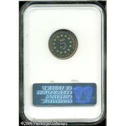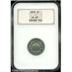<B>1879 5C PR67 NGC.</B></I> Ice-blue, gold, and pastel lilac surfaces display a cameo-like appearance, particularly on the obverse. Population: 13 in 67, 1 finer (1/05). Lot:5853