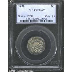 <TR><TD width="100%"><TABLE cellSpacing=1 cellPadding=3 width="100%" border=0><TBODY><TR><TD width="100%" bgColor=#79735c><FONT face=arial color=#ffffff size=3><B>Description</B> </FONT></TD></TR><TR><TD width="100%" bgColor=#ffffff><FONT face=arial size=2><B>1879 5C PR67 PCGS.</B></I> Not an overly flashy specimen, but the moderately mirrored and virtually untoned surfaces display a technical superiority that is found on only a small percentage of Shield Nickel proofs. Population: 12 in 67, 0 finer (4/03). </FONT></TD></TR></TBODY></TABLE></TD></TR></TBODY></TABLE><BR><A name=PricesRealized></A><TABLE cellSpacing=0 cellPadding=0 width="100%" bgColor=#000000 border=0><TBODY><TR><TD width="100%"><TABLE cellSpacing=1 cellPadding=3 width="100%" border=0><TBODY><TR><TD width="100%" bgColor=#79735c><A name=PR><FONT face=arial color=#ffffff size=3><B>Previous Prices from Heritage Auctions</B> </FONT></A></TD></TR><TR><TD bgColor=#f6f6ed><TABLE cellSpacing=0 cellPadding=0 width="100%" border=1><TBODY><TR><TD align=middle width="33%"><B>Date</B></TD><TD align=middle width="33%"><B>Service</B></TD><TD align=middle width="33%"><B>Price</B></TD></TR><TR bgColor=whitesmoke><TD width="33%"><B>08/13/1999</B></TD><TD width="33%">PCGS</TD><TD width="33%">$1,725.00</TD></TR><TR bgColor=whitesmoke><TD width="33%"><B>10/16/2001</B></TD><TD width="33%">NGC</TD><TD width="33%">$1,500.00</TD></TR></TBODY></TABLE></TD></TR><TR><TD bgColor=#ffffff><FONT face=arial size=1 ?>PLEASE NOTE: All prices realized reflect the final hammer price PLUS the buyer's premium in auctions that charge a buyer's premium. Each item has a notation at the top of the listing indicating whether that lot included a buyer's premium. Example: A item that sells with a final hammer price of $100 and a 20% buyer's premium will display with a price realized of $120. All information listed is intended to be as accurate as possible, but errors are possible. Please use this guide carefully and inform us of any inaccuracies. </FONT></TD></TR></TBODY></TABLE></TD></TR></TBODY></TABLE><BR><TABLE cellSpacing=0 cellPadding=0 width="100%" bgColor=#000000 border=0><TBODY><TR><TD width="100%"><TABLE cellSpacing=1 cellPadding=3 width="100%" border=0><TBODY><TR><TD width="100%" bgColor=#79735c colSpan=6><FONT face=arial color=#ffffff size=3><B>Price Guide*</B> </FONT></TD></TR><TR bgColor=#f6f6ed><TD align=middle><B>Grade</B> </TD><TD align=middle><B>Coin World<BR>(Trends)</B> </TD><TD align=middle><B>Numismedia<BR>Retail</B> </TD><TD align=middle><B>Numismedia<BR>Wholesale</B> </TD><TD align=middle><B>Coin<BR>Universe</B> </TD><TD align=middle><B>Heritage<BR>Value Index</B> </TD></TR><TR bgColor=#ffffff><TD align=middle>66</TD><TD align=right>---</TD><TD align=right>---</TD><TD align=right>$875.00</TD><TD align=right>$1,150.00</TD><TD align=right>$790.00</TD></TR><TR style="FONT-WEIGHT: bold" bgColor=#cccfdd><TD align=middle>67</TD><TD align=right>---</TD><TD align=right>---</TD><TD align=right>$1,750.00</TD><TD align=right>$2,500.00</TD><TD align=right>$1,625.00</TD></TR><TR bgColor=#ffffff><TD align=middle>68</TD><TD align=right>---</TD><TD align=right>---</TD><TD align=right>$8,250.00</TD><TD align=right>---</TD><TD align=right>---</TD></TR><TR bgColor=#ffffff><TD colSpan=6><FONT size=1>*All information listed is intended to be as accurate as possible, but errors are possible. No item may be returned or refused based on this information which is provided as a service to our customers. You should contact each pricing source directly to determine the accuracy of this information. </FONT></TD></TR></TBODY></TABLE></TD></TR></TBODY></TABLE><BR><TABLE cellSpacing=0 cellPadding=0 width="100%" bgColor=#000000 border=0><TBODY><TR><TD width="100%"><TABLE cellSpacing=1 cellPadding=3 width="100%" border=0><TBODY><TR><TD width="100%" bgColor=#79735c><FONT face=arial color=#ffffff size=3><B>Population Guide</B> </FONT></TD></TR><TR bgColor=#ffffff><TD align=middle><!-- Begin Output of Population Grid--><TABLE cellSpacing=0 cellPadding=0 width="100%" border=0><TBODY><TR><TD vAlign=center><TABLE cellSpacing=0 width="100%" border=1 cellsadding="3"><TBODY><TR><TD vAlign=center><TABLE cellSpacing=0 cellPadding=3 width="100%" border=1><TBODY><TR><TD vAlign=center align=middle bgColor=#f0f1e8 colSpan=2 <CENTER><FONT face=Arial size=2><B>PCGS Pop </B></FONT><CENTER></CENTER></TD><TD vAlign=center align=middle bgColor=#f0f1e8 colSpan=2><CENTER><FONT face=Arial size=2><B>NGC Pop</B></CENTER></FONT></TD></TR><TR><TD vAlign=center><FONT face=Arial size=2>(67)</FONT> </TD><TD vAlign=center align=right><FONT face=Arial size=2>12</FONT> </TD><TD vAlign=center><FONT face=Arial size=2>(67)</FONT> </TD><TD vAlign=center align=right><FONT face=Arial size=2>12</FONT> </TD></TR><TR><TD vAlign=center><FONT face=Arial size=2>(>67)</FONT> </TD><TD vAlign=center align=right><FONT face=Arial size=2>0</FONT> </TD><TD vAlign=center><FONT face=Arial size=2>(>67)</FONT> </TD><TD vAlign=center align=right><FONT face=Arial size=2>1</FONT> </TD></TR></TBODY></TABLE></TD></TR></TBODY></TABLE></TD></TR></TBODY></TABLE><!-- End Output of Population Grid--></TD></TR></TBODY></TABLE></TD></TR></TBODY></TABLE><BR><TABLE cellSpacing=0 cellPadding=0 width="100%" bgColor=#000000 border=0><TBODY><TR> Important notice: We expect to be auctioning lots at the rate of 200-250 per hour. On occasion eBay live bid software cannot keep up with the pace of the auctions where 4-5 lots per minute can hammer down, so we recommend that you place a realistic absentee bid now as insurance to avoid disappointment. Also please note that all Heritage/CAA lots purchased through eBay Live carry a 20% Buyer's Premium. Please make sure you read the Terms and Conditions.