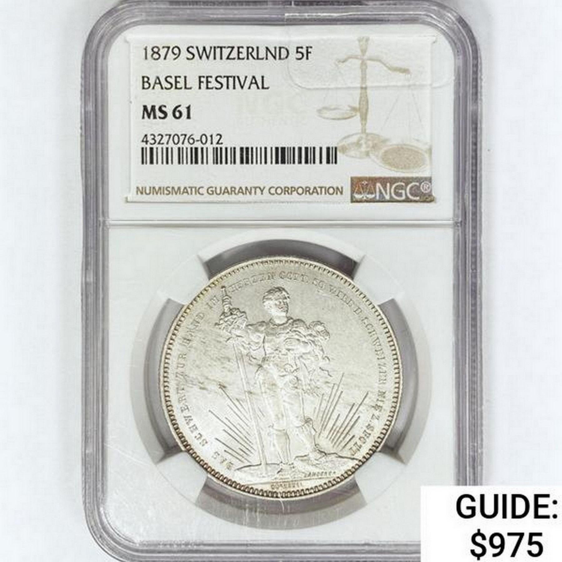 1879 5F .84oz silver SWITZERLAND NGC MS61