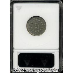 <B>1879/8<5C> PR65 ANACS.</B></I> The familiar curve of an underdigit 8 below the upper loop of the 9 in the date confirms this popular variety. A well struck Gem with a slightly muted silver-gray appearance and no mentionable contact marks or spots. <BR><BR><B>Important notice:</B> Heritage usually auctions material at the rate of 200-250 lots per hour. On some occasions eBay Live bid software or the Internet may not be able to keep up with the pace of the auction. We recommend placing a realistic absentee bid now as insurance to avoid disappointment. Occasionally the auctioneer may eliminate or reject an eBay Live bid, and the auctioneer may also reopen a lot after the close of the eBay live bidding (usually because we missed an audience bid), and may reject your bid even if it shows you as the winning bidder. By bidding via eBay Live, you agree that Heritage may award the lot to another bidder at its sole discretion under the circumstances described above or any other reasonable circumstances. Since eBay bids are not shown to us until we open the lot on the floor, we treat those bids just like floor bids. In most cases the floor responds before the eBay bid is presented to us, due to Internet lag time, so for consistency we have made it a policy that floor bids are always considered first over tie eBay live bids. Also please note that all Heritage lots purchased through eBay Live carry a 20% Buyer's Premium. Please make sure you read the Terms and Conditions before you bid.