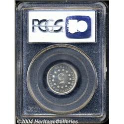 <B>1879/8<5C> PR66 Cameo PCGS.</B></I> An instantly appealing proof Gem, entirely brilliant with a thick layer of sparkling mint frost on both sides. There is appreciable field-to-device contrast, especially on the obverse. Population: 13 in 66 Cameo, 8 finer (3/04). <BR><BR><B>Important notice:</B> Heritage usually auctions material at the rate of 200-250 lots per hour. On some occasions eBay Live bid software or the Internet may not be able to keep up with the pace of the auction. We recommend placing a realistic absentee bid now as insurance to avoid disappointment. Occasionally the auctioneer may eliminate or reject an eBay Live bid, and the auctioneer may also reopen a lot after the close of the eBay live bidding (usually because we missed an audience bid), and may reject your bid even if it shows you as the winning bidder. By bidding via eBay Live, you agree that Heritage may award the lot to another bidder at its sole discretion under the circumstances described above or any other reasonable circumstances. Since eBay bids are not shown to us until we open the lot on the floor, we treat those bids just like floor bids. In most cases the floor responds before the eBay bid is presented to us, due to Internet lag time, so for consistency we have made it a policy that floor bids are always considered first over tie eBay live bids. Also please note that all Heritage lots purchased through eBay Live carry a 20% Buyer's Premium. Please make sure you read the Terms and Conditions before you bid.