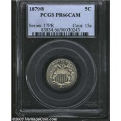 <TABLE cellSpacing=0 cellPadding=0 width="100%" bgColor=#000000 border=0><TBODY><TR><TD width="100%"><TABLE cellSpacing=1 cellPadding=3 width="100%" border=0><TBODY><TR><TD width="100%" bgColor=#79735c><FONT face=arial color=#ffffff size=3><B>Description</B> </FONT></TD></TR><TR><TD width="100%" bgColor=#ffffff><FONT face=arial size=2><B>1879/8 5C PR66 Cameo PCGS.</B></I> Curves of an underdigit are obvious within the loops of the 9 in the date. A well struck Gem that has peripheral apple-green patina and nearly untoned centers. Beautifully preserved and with satiny luster. Population: 12 in 66 as Cameo, 3 finer (4/03). </FONT></TD></TR></TBODY></TABLE></TD></TR></TBODY></TABLE><BR><A name=PricesRealized></A><TABLE cellSpacing=0 cellPadding=0 width="100%" bgColor=#000000 border=0><TBODY><TR><TD width="100%"><TABLE cellSpacing=1 cellPadding=3 width="100%" border=0><TBODY><TR><TD width="100%" bgColor=#79735c><A name=PR><FONT face=arial color=#ffffff size=3><B>Previous Prices from Heritage Auctions</B> </FONT></A></TD></TR><TR><TD bgColor=#f6f6ed><TABLE cellSpacing=0 cellPadding=0 width="100%" border=1><TBODY><TR><TD align=middle width="33%"><B>Date</B></TD><TD align=middle width="33%"><B>Service</B></TD><TD align=middle width="33%"><B>Price</B></TD></TR><TR bgColor=whitesmoke><TD width="33%"><B>03/01/2003</B></TD><TD width="33%">PCGS</TD><TD width="33%">$1,495.00</TD></TR><TR bgColor=whitesmoke><TD width="33%"><B>08/06/2003</B></TD><TD width="33%">PCGS</TD><TD width="33%">$1,437.50</TD></TR><TR bgColor=whitesmoke><TD width="33%"><B>07/30/2002</B></TD><TD width="33%">PCGS</TD><TD width="33%">$1,380.00</TD></TR><TR bgColor=whitesmoke><TD width="33%"><B>07/30/2002</B></TD><TD width="33%">NGC</TD><TD width="33%">$1,035.00</TD></TR></TBODY></TABLE></TD></TR><TR><TD bgColor=#ffffff><FONT face=arial size=1 ?>PLEASE NOTE: All prices realized reflect the final hammer price PLUS the buyer's premium in auctions that charge a buyer's premium. Each item has a notation at the top of the listing indicating whether that lot included a buyer's premium. Example: A item that sells with a final hammer price of $100 and a 20% buyer's premium will display with a price realized of $120. All information listed is intended to be as accurate as possible, but errors are possible. Please use this guide carefully and inform us of any inaccuracies. </FONT></TD></TR></TBODY></TABLE></TD></TR></TBODY></TABLE><BR><TABLE cellSpacing=0 cellPadding=0 width="100%" bgColor=#000000 border=0><TBODY><TR><TD width="100%"><TABLE cellSpacing=1 cellPadding=3 width="100%" border=0><TBODY><TR><TD width="100%" bgColor=#79735c colSpan=6><FONT face=arial color=#ffffff size=3><B>Price Guide*</B> </FONT></TD></TR><TR bgColor=#f6f6ed><TD align=middle><B>Grade</B> </TD><TD align=middle><B>Coin World<BR>(Trends)</B> </TD><TD align=middle><B>Numismedia<BR>Retail</B> </TD><TD align=middle><B>Numismedia<BR>Wholesale</B> </TD><TD align=middle><B>Coin<BR>Universe</B> </TD><TD align=middle><B>Heritage<BR>Value Index</B> </TD></TR><TR bgColor=#ffffff><TD align=middle>65</TD><TD align=right>---</TD><TD align=right>---</TD><TD align=right>---</TD><TD align=right>---</TD><TD align=right>$617.50</TD></TR><TR style="FONT-WEIGHT: bold" bgColor=#cccfdd><TD align=middle>66</TD><TD align=right>---</TD><TD align=right>---</TD><TD align=right>---</TD><TD align=right>---</TD><TD align=right>---</TD></TR><TR bgColor=#ffffff><TD align=middle>67</TD><TD align=right>---</TD><TD align=right>---</TD><TD align=right>---</TD><TD align=right>---</TD><TD align=right>---</TD></TR><TR bgColor=#ffffff><TD colSpan=6><FONT size=1>*All information listed is intended to be as accurate as possible, but errors are possible. No item may be returned or refused based on this information which is provided as a service to our customers. You should contact each pricing source directly to determine the accuracy of this information. </FONT></TD></TR></TBODY></TABLE></TD></TR></TBODY></TABLE><BR><TABLE cellSpacing=0 cellPadding=0 width="100%" bgColor=#000000 border=0><TBODY><TR><TD width="100%"><TABLE cellSpacing=1 cellPadding=3 width="100%" border=0><TBODY><TR><TD width="100%" bgColor=#79735c><FONT face=arial color=#ffffff size=3><B>Population Guide</B> </FONT></TD></TR><TR bgColor=#ffffff><TD align=middle><!-- Begin Output of Population Grid--><TABLE cellSpacing=0 cellPadding=0 width="100%" border=0><TBODY><TR><TD vAlign=center><TABLE cellSpacing=0 width="100%" border=1 cellsadding="3"><TBODY><TR><TD vAlign=center><TABLE cellSpacing=0 cellPadding=3 width="100%" border=1><TBODY><TR><TD vAlign=center align=middle bgColor=#f0f1e8 colSpan=2 <CENTER><FONT face=Arial size=2><B>PCGS Pop </B></FONT><CENTER></CENTER></TD><TD vAlign=center align=middle bgColor=#f0f1e8 colSpan=2><CENTER><FONT face=Arial size=2><B>NGC Pop</B></CENTER></FONT></TD></TR><TR><TD vAlign=center><FONT face=Arial size=2>(66)</FONT> </TD><TD vAlign=center align=right><FONT face=Arial size=2>9</FONT> </TD><TD vAlign=center><FONT face=Arial size=2>(66)</FONT> </TD><TD vAlign=center align=right><FONT face=Arial size=2>4</FONT> </TD></TR><TR><TD vAlign=center><FONT face=Arial size=2>(>66)</FONT> </TD><TD vAlign=center align=right><FONT face=Arial size=2>2</FONT> </TD><TD vAlign=center><FONT face=Arial size=2>(>66)</FONT> </TD><TD vAlign=center align=right><FONT face=Arial size=2>3</FONT> </TD></TR></TBODY></TABLE></TD></TR></TBODY></TABLE></TD></TR></TBODY></TABLE><!-- End Output of Population Grid--> Important notice: Heritage usually auctions material at the rate of 200-250 lots per hour. On some occasions eBay Live bid software or the Internet may not be able to keep up with the pace of the auction. We recommend placing a realistic absentee bid now as insurance to avoid disappointment. Occasionally the auctioneer may eliminate or reject an eBay Live bid, and the auctioneer may also reopen a lot after the close of the eBay live bidding (usually because we missed an audience bid), and may reject your bid even if it shows you as