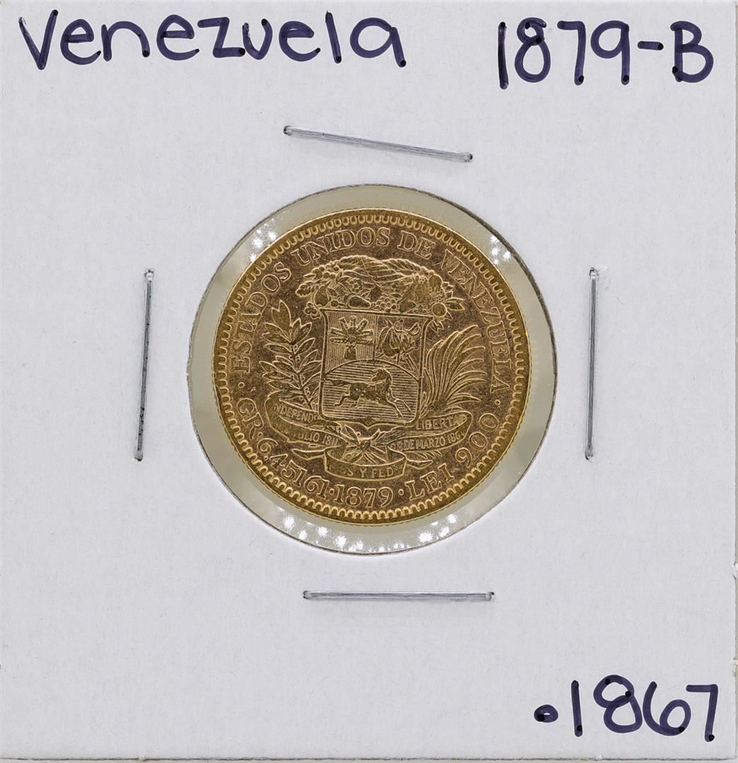 One 1879-B Venezuela 20 Bolivar Gold Coin.