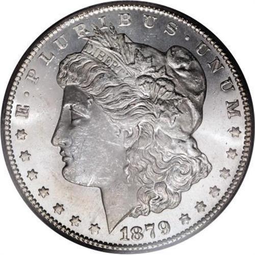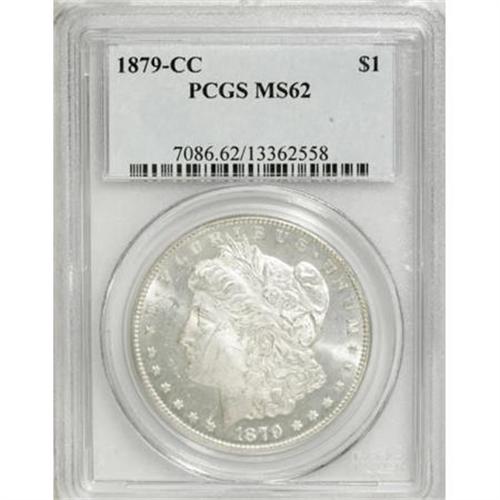 <B>1879-CC $1 MS62 PCGS.</B></I> A semi-key in the Morgan series with only 756,000 pieces struck, this issue has typically been seen as scarce, and the examples contained in the GSA hoards failed to meet numismatic demand (unlike the 1881-CC and 1885-CC). This is a splendid, upper-end MS64 example with frosty devices and a light-pink color. Semi-reflective surfaces showcase the strong luster characteristics that this issue is known for. Strongly impressed with minimal abrasions for a '79-CC, and possessing a full and clear mint mark.<BR><BR><B>Coin Engraver:</B> George T. Morgan<BR><BR><b>Shipping:</b> Coins & Currency (<a target="_blank" href="http://www.heritageauctions.com/common/shipping.php">view shipping information</a>)