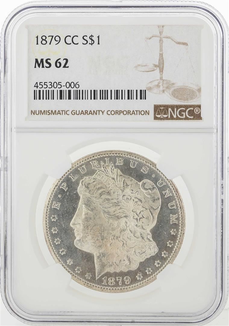 One 1879-CC $1 Morgan Silver Dollar Coin NGC MS62. NGC Certified.