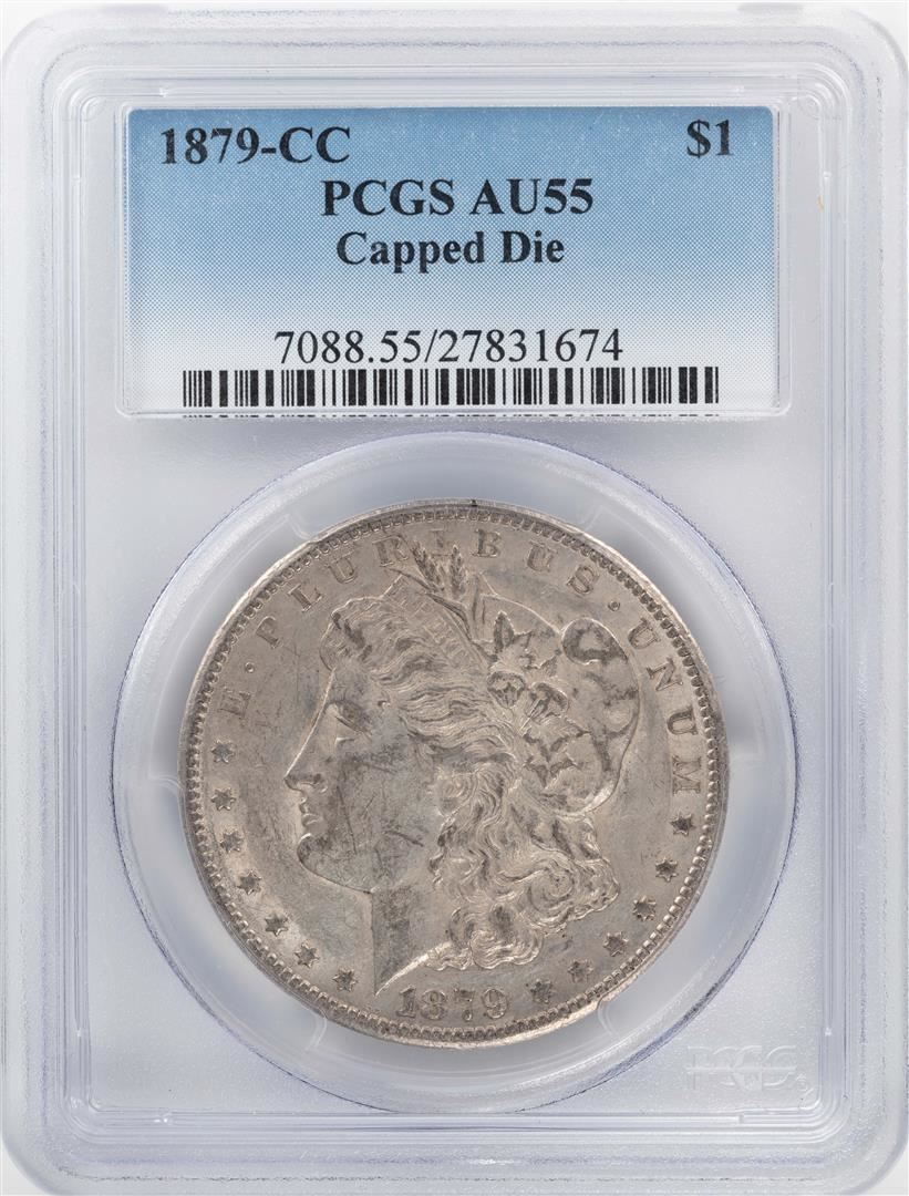 One 1879-CC $1 Morgan Silver Dollar Coin PCGS AU55 Capped Die. PCGS Graded.