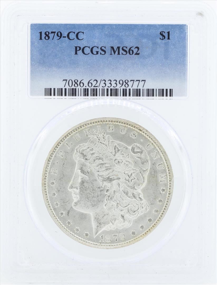 One 1879-CC $1 Morgan Silver Dollar Coin PCGS MS62. PCGS Graded.