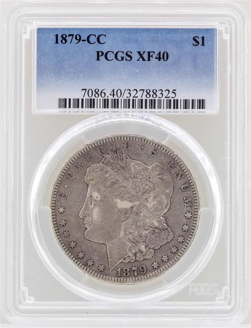 One 1879-CC $1 Morgan Silver Dollar Coin PCGS XF40. PCGS Graded.
