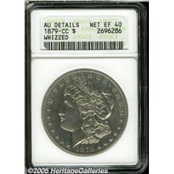 <B>1879-CC<img border='0' src='http://www.heritagecoins.com/images/star.gif' width=10 height=10>$1 --Whizzed--ANACS. AU Details, Net XF40.</B></I> Relatively heavy hairline scratches are noted over the silvery surfaces.