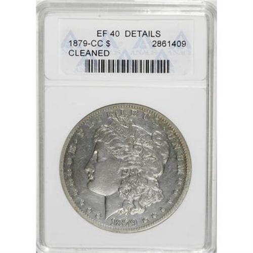 <B>1879-CC $1 --Cleaned--ANACS. XF40 Details.</B></I> NGC Census: (59/1110). PCGS Population (63/2180). Mintage: 756,000. Numismedia Wsl. Price for NGC/PCGS coin in XF40: $550. (#7086)<BR><BR><B>Coin Engraver:</B> George T. Morgan<BR><BR><b>Shipping:</b> Coins & Currency (<a target="_blank" href="http://www.heritageauctions.com/common/shipping.php">view shipping information</a>)