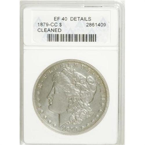 <B>1879-CC $1 --Cleaned--ANACS. XF40 Details.</B></I> NGC Census: (59/1110). PCGS Population (63/2180). Mintage: 756,000. Numismedia Wsl. Price for NGC/PCGS coin in XF40: $550. (#7086)<BR><BR><B>Coin Engraver:</B> George T. Morgan<BR><BR><b>Shipping:</b> Coins & Currency (<a target="_blank" href="http://www.heritageauctions.com/common/shipping.php">view shipping information</a>)