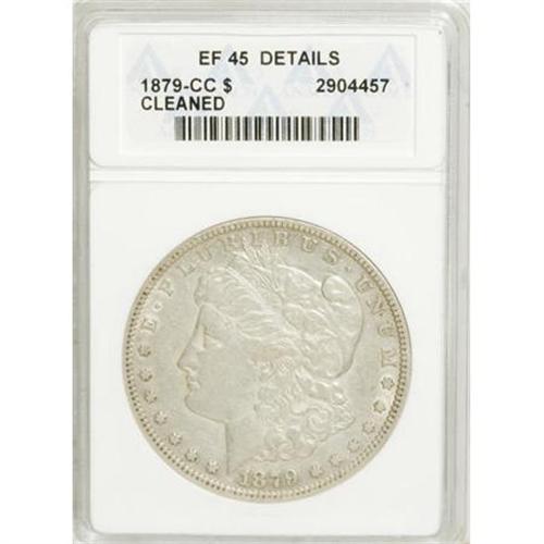 <B>1879-CC $1 --Cleaned--ANACS. XF45 Details.</B></I> NGC Census: (91/1060). PCGS Population (86/2174). Mintage: 756,000. Numismedia Wsl. Price for NGC/PCGS coin in XF45: $839. (#7086)<BR><BR><B>Coin Engraver:</B> George T. Morgan<BR><BR><b>Shipping:</b> Coins & Currency (<a target="_blank" href="http://www.heritageauctions.com/common/shipping.php">view shipping information</a>)