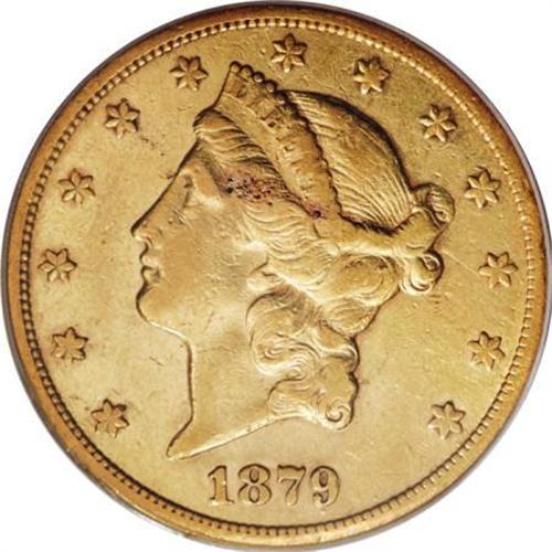 <B>1879-CC $20 VF30 PCGS.</B></I> This orange-gold example retains noticeable luster. The wing, hair, and shield definition is impressive for the designated grade. Examination with a loupe reveals struck-in grease near the forehead curls and the Y in LIBERTY. A scarcer Carson City date with an emission of only 10,708 pieces.<BR><BR><B>Coin Engraver:</B> James B. Longacre<BR><BR><b>Shipping:</b> Coins & Currency (<a target="_blank" href="http://www.heritageauctions.com/common/shipping.php">view shipping information</a>)