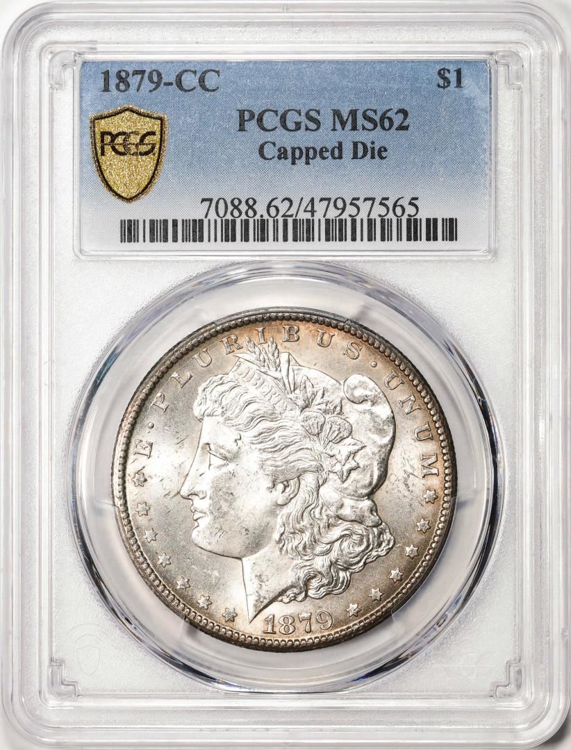 One 1879-CC Capped Die $1 Morgan Silver Dollar Coin PCGS MS62. PCGS Graded.