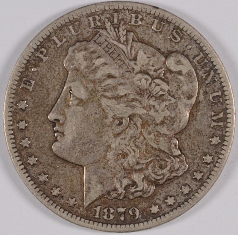 1879-CC MORGAN SILVER DOLLAR, ABOUT XF "CLEAR CC"