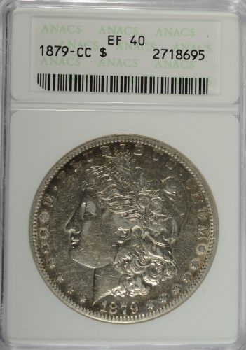 1879-CC MORGAN SILVER DOLLAR, ANACS EF-40, HAS LUSTER