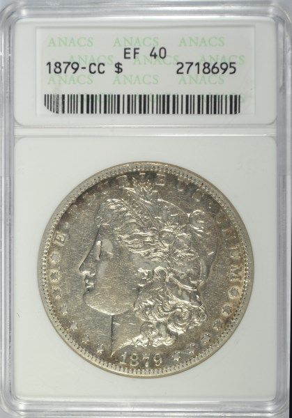 1879-CC MORGAN SILVER DOLLAR, ANACS EF-40, HAS LUSTER