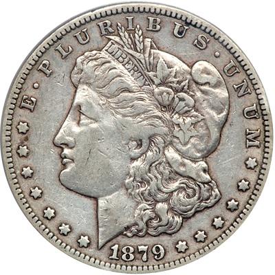 1879-CC Morgan Dollar. PCGS graded VF-35. An important date in the Carson City Mint series. Even wear (PCGS # 7086) .