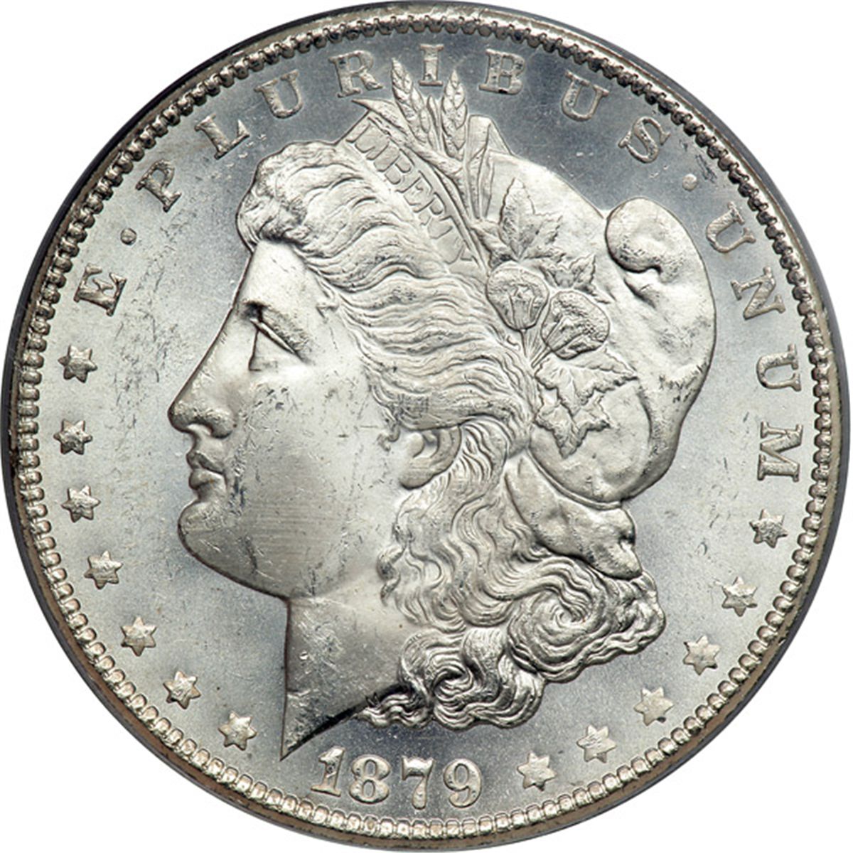 1879-CC Morgan Dollar. PCGS graded MS-63 PQ. CAC Approved. A nice white example. Perfect Dies. Fully lustrous examples of ’79-CC, with nice definition and a dancing cartwheel luster, is just what we recommend to serious Morgan silver dollar collectors. One of the key Carson City issues and a date that always commands attention in nice Mint State condition (PCGS # 7086) .