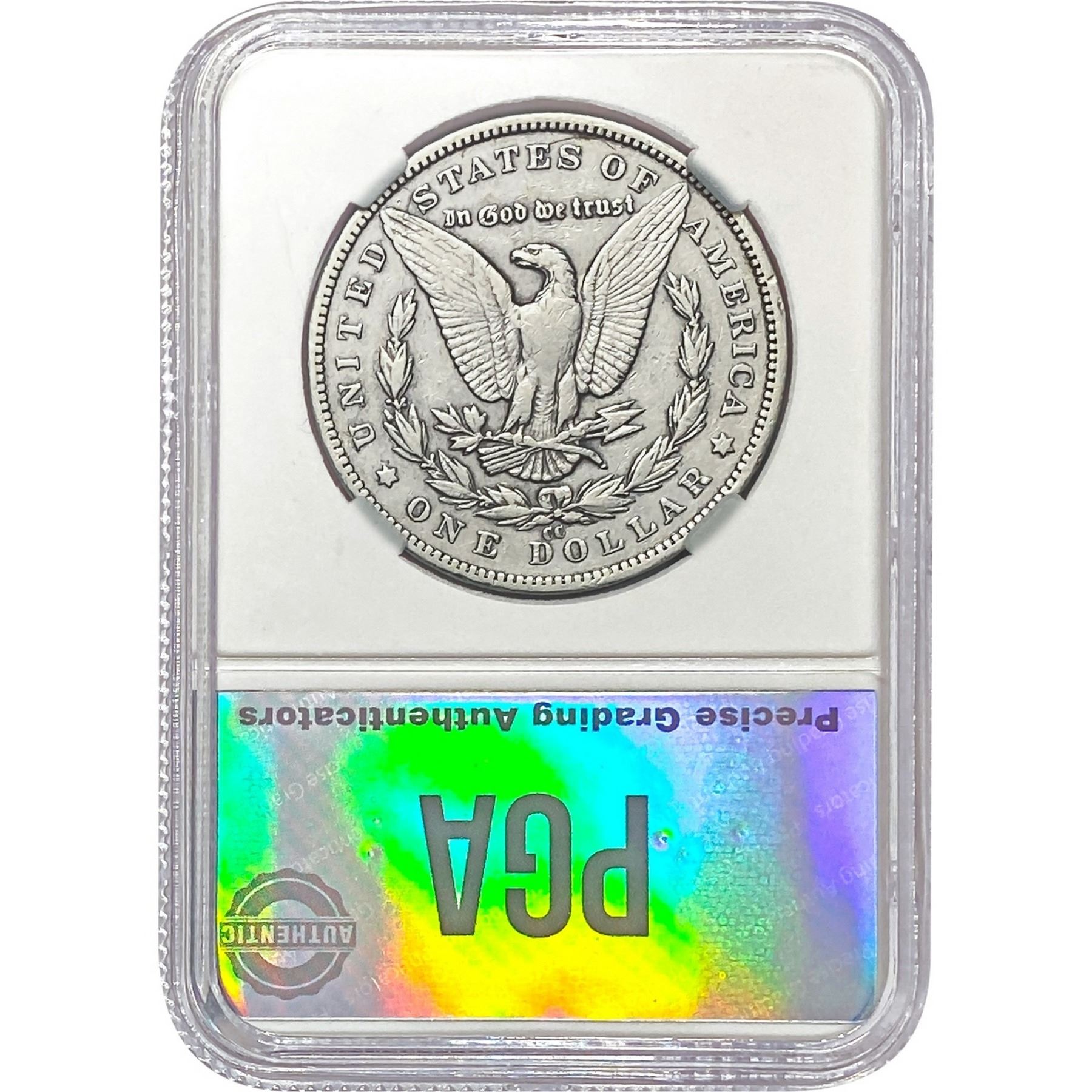 COINS AND CURRENCY LISTED IN GSA’S CATALOG AS GRADED AND ENCAPSULATED BY PCGS, NGC, ANACS, ICG, PCGS CURRENCY, PMG, PCGS BANKNOTE GRADING, CMC OR ANY OTHER THIRD-PARTY GRADING SERVICE ARE LIKEWISE SOLD “AS-IS” EXCEPT AS EXPRESSLY SET FORTH HEREIN. ALL THIRD-PARTY GRADING SERVICE GUARANTEES, INCLUDING AUTHENTICITY, ARE THE SOLE RESPONSIBILITY OF THE THIRD-PARTY GRADING SERVICE AND NOT WARRANTIES OR GUARANTEES OF GSA. BIDDERS SHOULD CONTACT THESE THIRD-PARTY GRADING SERVICES DIRECTLY WITH RESPECT TO ANY CLAIMS OR QUESTIONS THEY MAY HAVE CONCERNING THEIR GUARANTEES AND WARRANTIES. BIDDERS ACKNOWLEDGE AND AGREE THAT AUCTIONEER IS NOT BOUND BY OR LIABLE FOR ANY OPINION OR CERTIFICATION BY ANY THIRD-PARTY GRADING SERVICE. REMOVAL OF A PRODUCT FROM ITS PROTECTIVE CASING OR HOLDER OR ALTERATION OF ANY COIN HOLDER WAIVES ALL RIGHTS CONCERNING THE PRODUCT CONTAINED THEREIN.