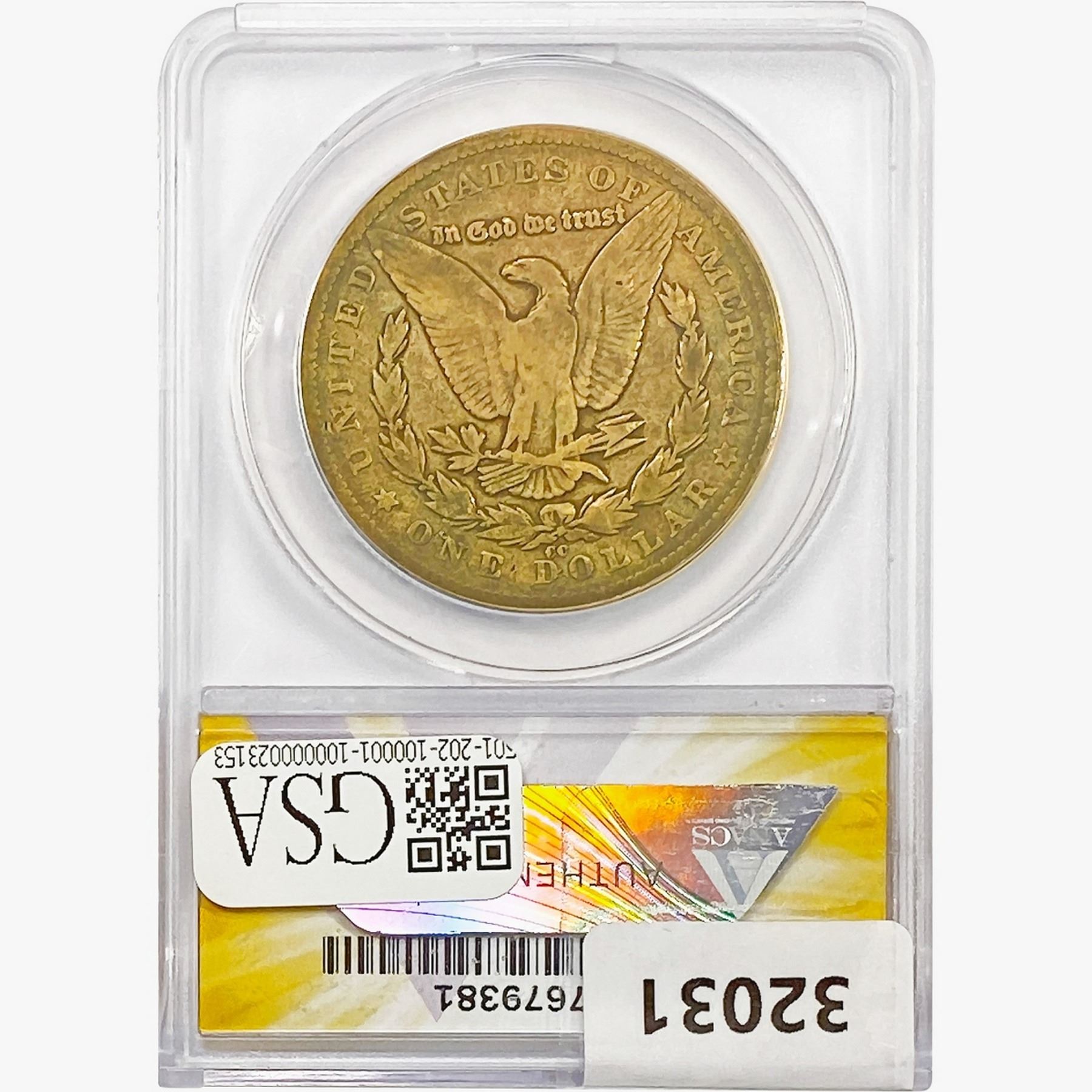 COINS AND CURRENCY LISTED IN GSA’S CATALOG AS GRADED AND ENCAPSULATED BY PCGS, NGC, ANACS, ICG, PCGS CURRENCY, PMG, PCGS BANKNOTE GRADING, CMC OR ANY OTHER THIRD-PARTY GRADING SERVICE ARE LIKEWISE SOLD “AS-IS” EXCEPT AS EXPRESSLY SET FORTH HEREIN. ALL THIRD-PARTY GRADING SERVICE GUARANTEES, INCLUDING AUTHENTICITY, ARE THE SOLE RESPONSIBILITY OF THE THIRD-PARTY GRADING SERVICE AND NOT WARRANTIES OR GUARANTEES OF GSA. BIDDERS SHOULD CONTACT THESE THIRD-PARTY GRADING SERVICES DIRECTLY WITH RESPECT TO ANY CLAIMS OR QUESTIONS THEY MAY HAVE CONCERNING THEIR GUARANTEES AND WARRANTIES. BIDDERS ACKNOWLEDGE AND AGREE THAT AUCTIONEER IS NOT BOUND BY OR LIABLE FOR ANY OPINION OR CERTIFICATION BY ANY THIRD-PARTY GRADING SERVICE. REMOVAL OF A PRODUCT FROM ITS PROTECTIVE CASING OR HOLDER OR ALTERATION OF ANY COIN HOLDER WAIVES ALL RIGHTS CONCERNING THE PRODUCT CONTAINED THEREIN.