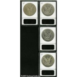 <B>1879-CC<img border='0' src='http://www.heritagecoins.com/images/star.gif' width=10 height=10>$1 --Rims Filed, Cleaned--ANACS, AU Details, Net XF40; 1880-CC--Polished--ANACS, AU Details, Net XF40; 1888-S--Scratched, Cleaned--ANACS, AU Details, Net XF45;</B></I> and an <B>1890-CC--Edge Corroded, Cleaned--ANACS,</B></I> an affordable grouping of better date, highly collectible Morgan Dollars. 4 Coins Lot:9923