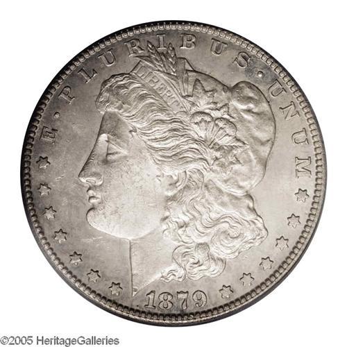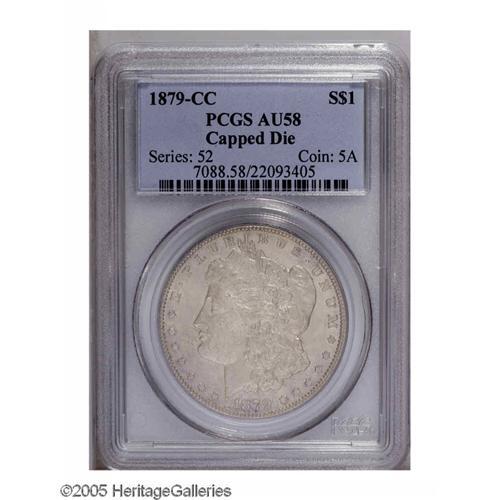 <B>1879-CC<S$1> Capped Die AU58 PCGS.</B></I> VAM-3. Top 100 Variety. There is little or no wear visible on this monochromatic silver-gray example and most of the noticeable abrasions are clustered on Liberty's cheek.
