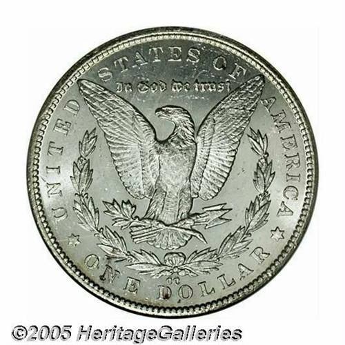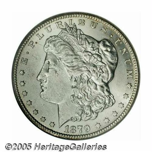 <B>1879-CC<S$1> Capped Die MS61 ANACS.</B></I> VAM-3, Top 100 Variety. Sharply struck, the otherwise brilliant surfaces show an accent of pale golden patina around the margins. Numerous small abrasions are peppered over the obverse, as usual for this issue.