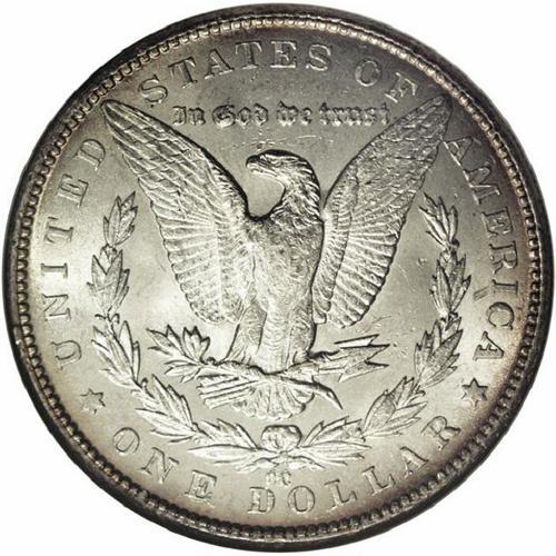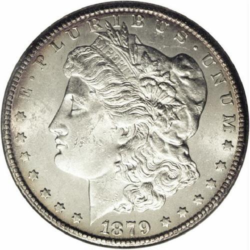 <B>1879-CC<img border='0' src='http://www.heritagecoins.com/images/star.gif' width=10 height=10>$1> Capped Die MS61 NGC.</B></I> VAM-3. A Top 100 Variety. Satiny-white centers are lightly framed in attractive golden-rose toning. We could easily see this crisp Uncirculated 1879-CC in an MS63 holder if not for a couple of deeper reeding marks on Liberty's cheek.