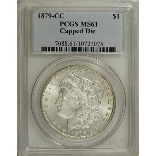 <B>1879-CC S$1 Capped Die MS61 PCGS.</B></I> VAM-3. A Top 100 Variety. The surfaces are immediately suggestive of a higher grade. Extensive scrutiny with a loupe fails to dispel that impression, as the numerous light abrasions are mostly undistracting and away from the prime focal areas. The untoned surfaces show radiant luster, although a couple of luster grazes do show on the cheek and left obverse field. There is little to dislike about this key-date coin.<BR><I>From The Twin Hollows Collection, Part Two.</B></I><BR><BR><b>Shipping:</b> Coins & Currency (<a target="_blank" href="http://www.heritageauctions.com/common/shipping.php">view shipping information</a>)