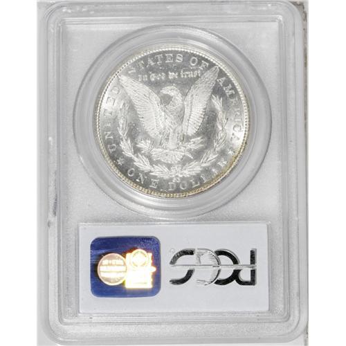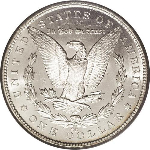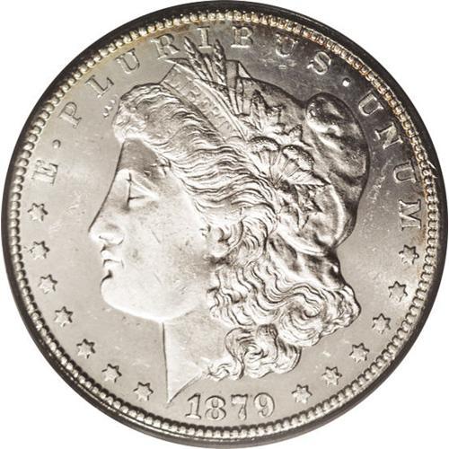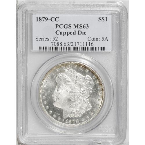<B>1879-CC<img border='0' src='http://www.heritagecoins.com/images/star.gif' width=10 height=10>$1> Capped Die MS63 PCGS.</B></I> VAM-3. A Top 100 Variety. This is a brilliant and lustrous example with sharp design elements and lots of eye appeal. The surfaces are frosty and nearly untoned, save for a bit of speckled russet color near the upper right obverse border. Surface marks are normal for the grade.