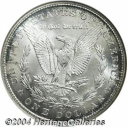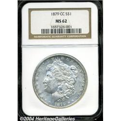 <B>1879-CC<S$1> MS62 NGC.</B></I> Perfect Mintmark Variety. This attractive dollar has frosty silver surfaces with wisps of pale green toning along the borders. Some diagonal striations are visible at the centers. A sharp strike although not fully detailed. <BR><BR><B>Important notice:</B> Heritage usually auctions material at the rate of 200-250 lots per hour. On some occasions eBay Live bid software or the Internet may not be able to keep up with the pace of the auction. We recommend placing a realistic absentee bid now as insurance to avoid disappointment. Occasionally the auctioneer may eliminate or reject an eBay Live bid, and the auctioneer may also reopen a lot after the close of the eBay live bidding (usually because we missed an audience bid), and may reject your bid even if it shows you as the winning bidder. By bidding via eBay Live, you agree that Heritage may award the lot to another bidder at its sole discretion under the circumstances described above or any other reasonable circumstances. Since eBay bids are not shown to us until we open the lot on the floor, we treat those bids just like floor bids. In most cases the floor responds before the eBay bid is presented to us, due to Internet lag time, so for consistency we have made it a policy that floor bids are always considered first over tie eBay live bids. Also please note that all Heritage lots purchased through eBay Live carry a 20% Buyer's Premium. Please make sure you read the Terms and Conditions before you bid. </span></font></tr></table></td></tr></table>