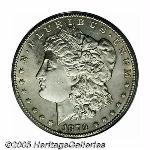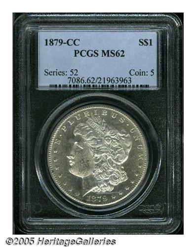 <B>1879-CC<S$1> MS62 PCGS.</B></I> A pleasing example of this scarcer, semi-key Carson City issue. The surfaces are bright and semi-prooflike with sharply defined design elements. Mostly brilliant, there is just the faintest hint of golden color around the margins. A few small marks on Liberty's cheek account for the grade.<BR><I>From The Empire State Collection.</B></I>