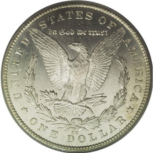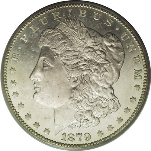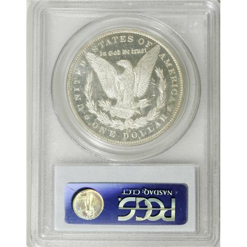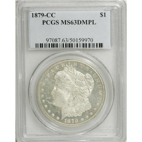 <B>1879-CC S$1 MS63 Deep Mirror Prooflike PCGS.</B></I> To underscore the rarity of the 1879-CC dollar with Deep Mirror fields, this is the first example we have offered at public auction since January 2006. Only a few dozen pieces are known in MS63 with another three dozen or so in higher grades (the finest are three MS65 coins). This is a stunning piece, and the collector should not let the fact that it is "only" an MS63 discourage him from aggressively bidding on this rarity. The fields are deeply mirrored on each side and the thick mint frost that CC dollars are known for provides stark white-on-black contrast. Sharply, but not completely struck up in the centers. The surfaces are brilliant throughout, and there are a few light abrasions and luster grazes that one would expect from a coin in this grade. The Deep Mirror Prooflike dollar collector may have to wait quite a while before such an opportunity is present once again. Population: 22 in 63, 21 finer (2/07).<BR><BR><b>Shipping:</b> Coins & Currency (<a target="_blank" href="http://www.heritageauctions.com/common/shipping.php">view shipping information</a>)