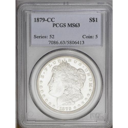 "1879-CC S$1 MS63 PCGS. Richly frosted, "