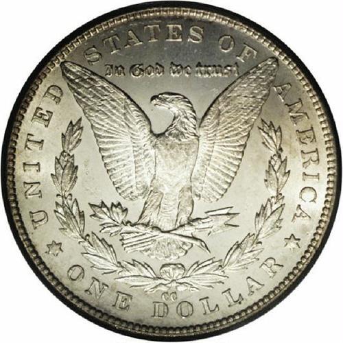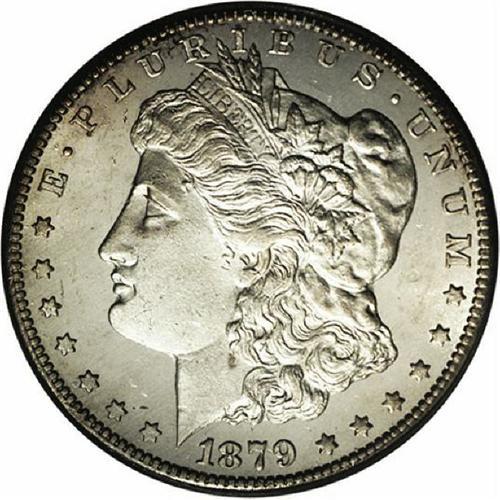 <B>1879-CC<img border='0' src='http://www.heritagecoins.com/images/star.gif' width=10 height=10>$1> MS63 PCGS.</B></I> Virtually untoned with shimmering, satiny luster that is a bit more lively on the obverse. The moderate cameo contrast is a plus. The fields are especially smooth for a Select example, but a few minor facial abrasions preclude a higher designation. This piece is nonetheless an attractive example of this always popular CC-mint key.