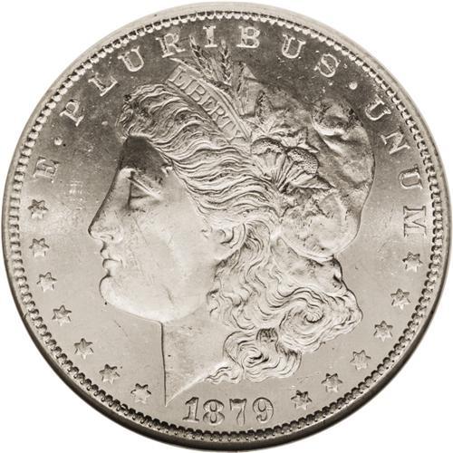 <B>1879-CC S$1 MS63 Prooflike NGC.</B></I> Both sides of this brilliant white Morgan have fully mirrored fields and lustrous devices, creating an attractive cameo appearance. The obverse has a few light abrasions as expected for the grade, while the reverse is substantially finer. The strike is sharp and the overall eye appeal is excellent.<BR><BR><b>Shipping:</b> Coin/Currency (<a target="_blank" href="http://www.heritageauctions.com/common/shipping.php">view shipping information</a>)