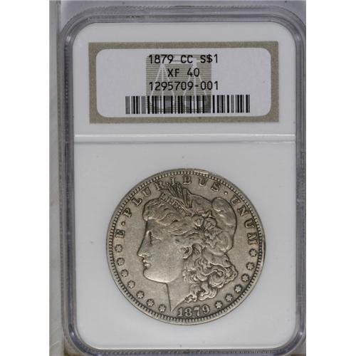 1879-CC S$1 XF40 NGC. A nicely detailed cream-gray exa 1879-CC