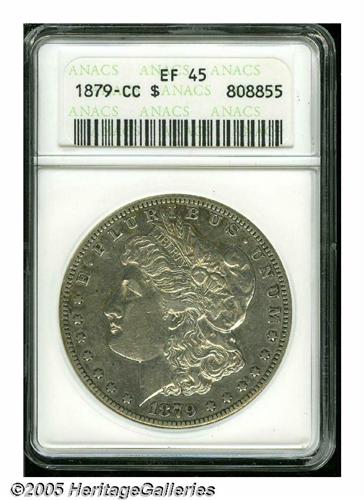 <B>1879-CC<S$1> XF45 ANACS.</B></I> Normal Mintmark variety. Attractive light gray surfaces with excellent eye appeal. Considerable luster remains on both sides, along with a trace of light gold color.<BR><I>From The Stig Ericsson Collection.</B></I>