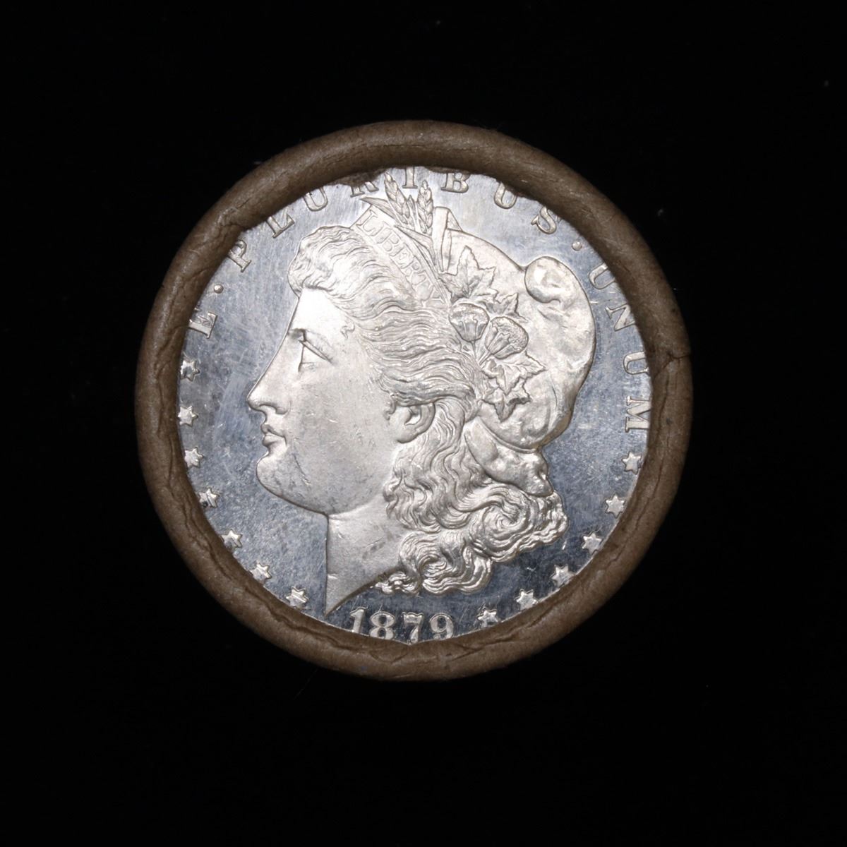 1879 & CC Uncirculated Morgan Dollar Shotgun Roll. Uncirculated Morgan Dollar Roll, Superb Ends, Carson City, Nevada Investment and Trust Co wrapper. Weighs Perfectly as a Uncirculated Roll. DMPL (Deep Mirror Proof Like) ends.