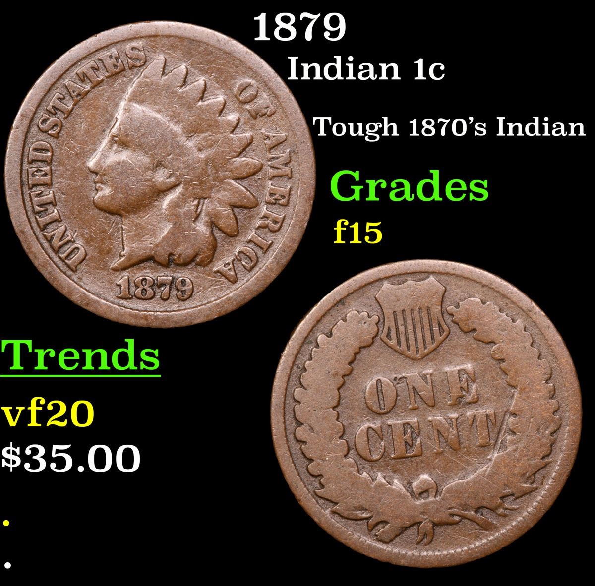 1879 Tough 1870's Indian . Indian Cent 1c Grades f+.
