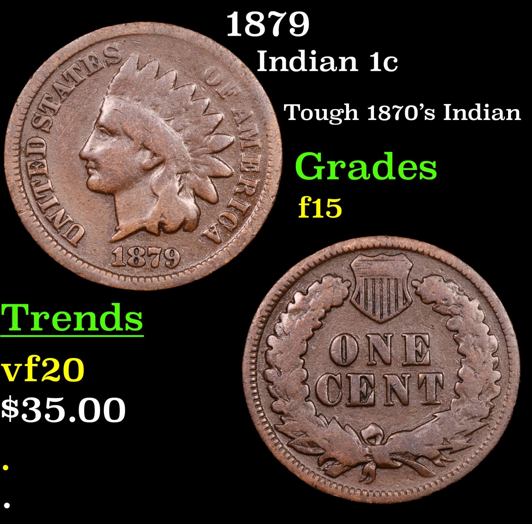 1879 Tough 1870's Indian . Indian Cent 1c Grades f+.