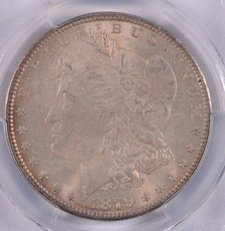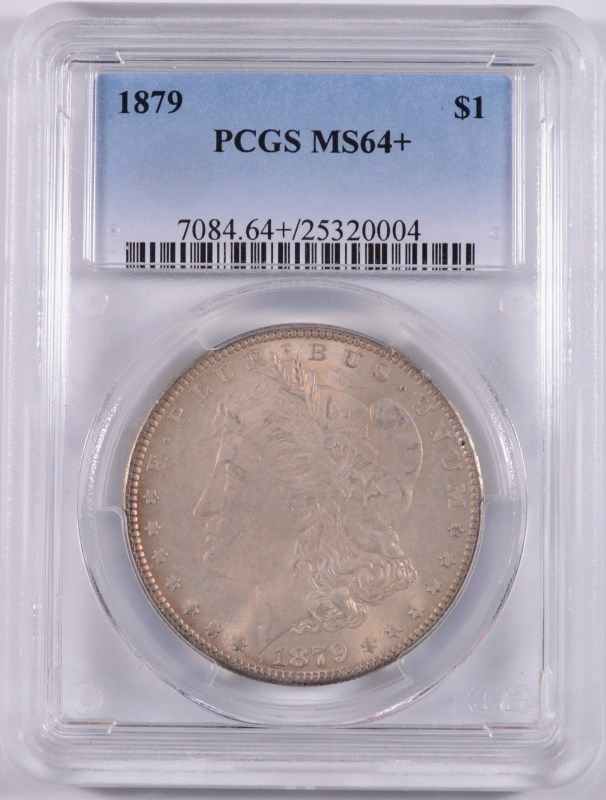 1879 MORGAN SILVER DOLLAR, PCGS MS64+, OVER $700 GREYSHEET IN MS-65, NICE COLOR!