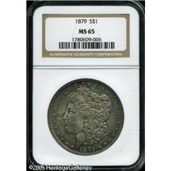 <B>1879<img border='0' src='http://www.heritagecoins.com/images/star.gif' width=10 height=10>$1 MS65 NGC.</B></I> Deeply toned with excellent eye appeal. This is an important offering for the advanced collector. Lot:9916