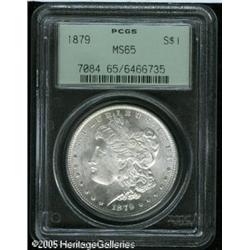 <B>1879<img border='0' src='http://www.heritagecoins.com/images/star.gif' width=10 height=10>$1 MS65 PCGS.</B></I> Nicely struck, with lustrous, silver-gray surfaces that reveal no obvious imperfections. Lot:9920