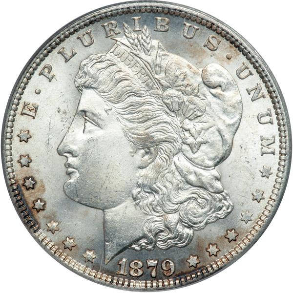 1879 Morgan Dollar. PCGS graded MS-65. Housed in an Old Green Holder. A nice frosty coin, attractive Gem quality for the Silver Dollar buyer (PCGS # 7084) .