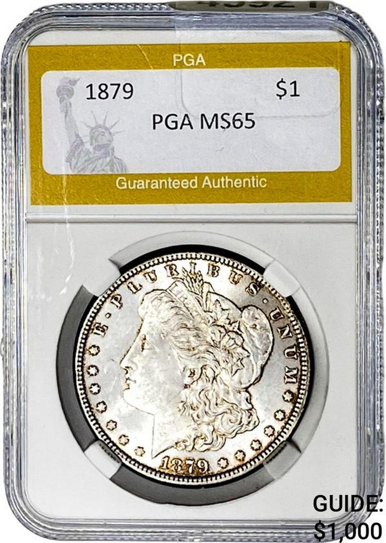 l. All non-certified coins and currency are guaranteed genuine, but are not guaranteed as to grade, since grading is a matter of opinion, an art and not a science, and therefore the description rendered by GSA or any third-party grading service may not agree with the opinion of others (including trained experts), and the same expert may not grade the same item with the same grade at two different times. GSA may, but is not obligated to, express an opinion as to non-certified numismatic items, in GSA’s opinion, or by its employees’ experience and the current interpretation of the American Numismatic Association’s standards as of the date the catalog was prepared. There is no guarantee or warranty expressed or implied that the grading opinions utilized by GSA, if any, will meet the standards of any grading service at any time in the future.