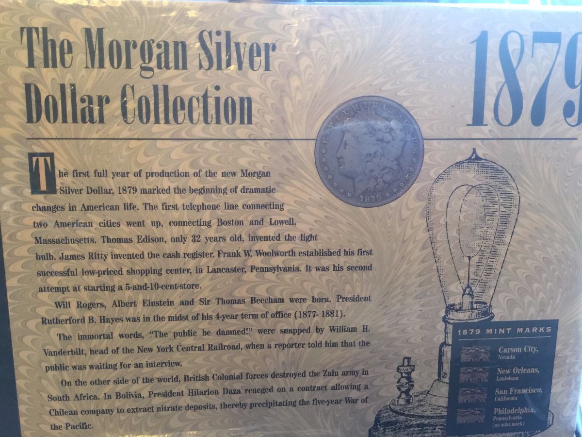 1879 Morgan dollar in full plastic display case